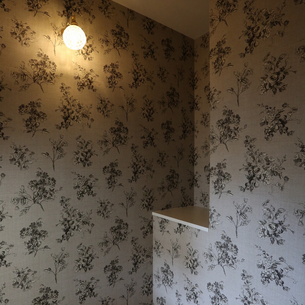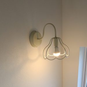 中はレトロシックな花柄&ガラスの照明器具があります。
