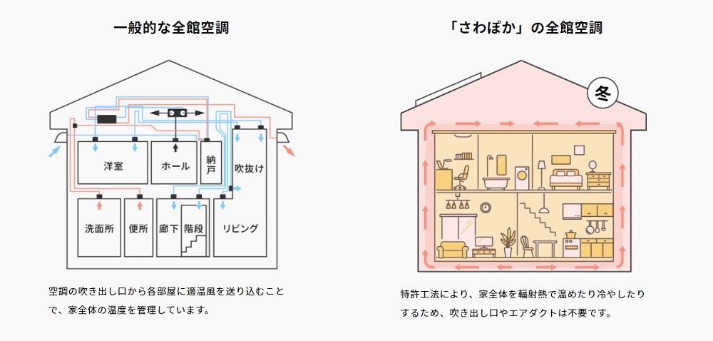 「さわぽか」とは『エアコンひとつで家じゅう快適温度にする全館空調システム』です。