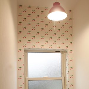 可愛いサクランボ柄の壁紙。見るたび、かわいい!!となっちゃいます。