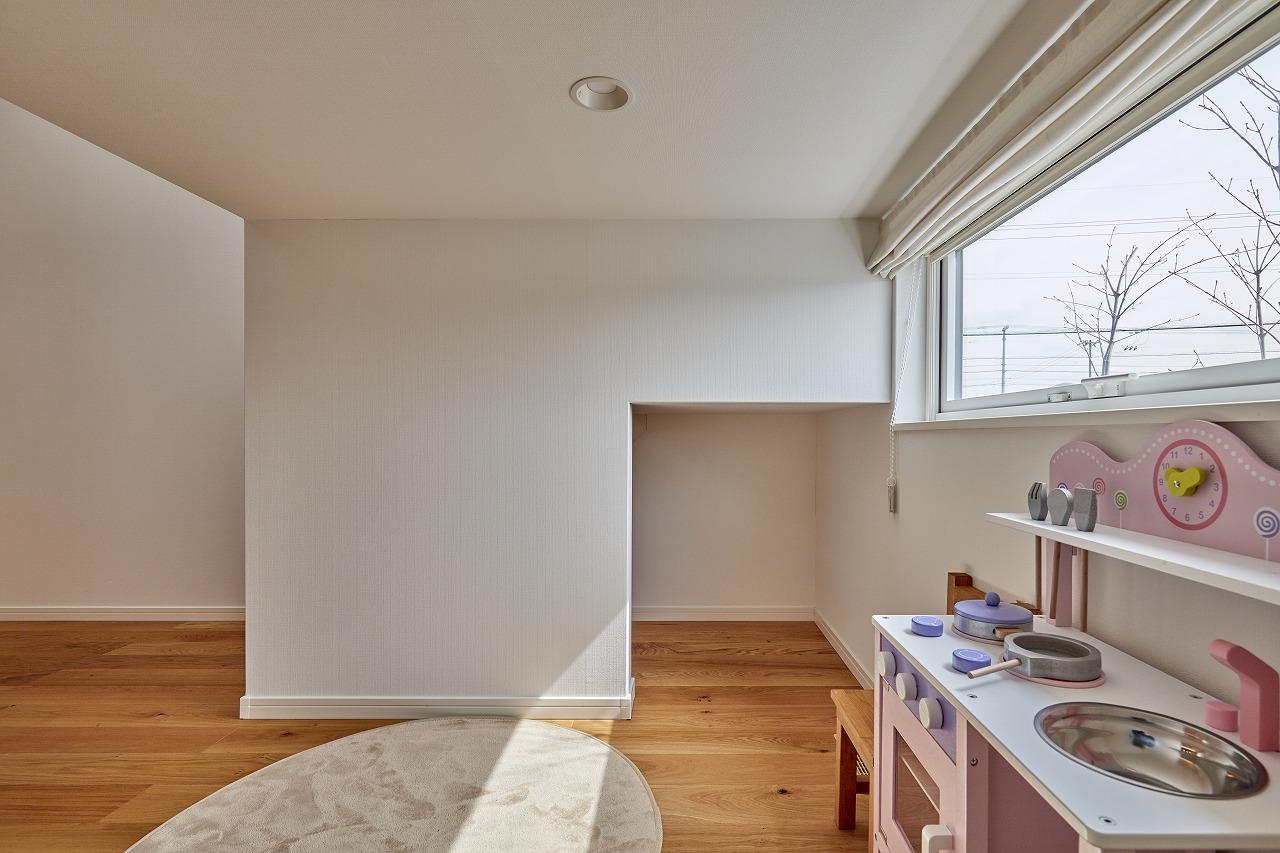 「階段下スペース。子供の遊び場や収納、いろんな使い方ができます」