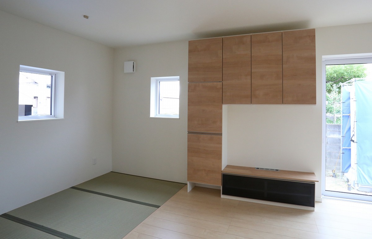 造り付けの収納はいろいろ組み合わせができるDAIKENのMiSERUというものをご採用いただきました。