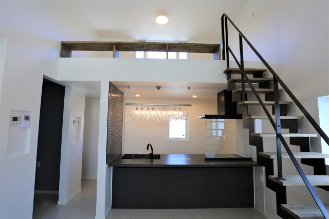 2階のLDKにはお施主様の要望でキッチン上部にリビングが見渡せるロフトをつくりました。