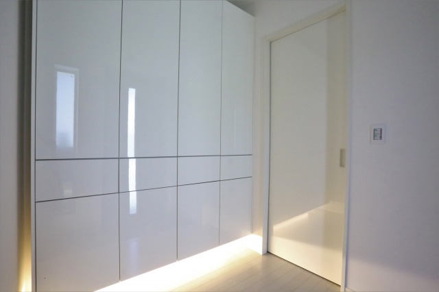 プライベートスペースでは、子供部屋のドア上にはガラスブロックをはめ込み、廊下から明かりがついているか確認できるようになっています。合わせて寝室や書斎の上もお揃いでガラスブロックをつけて色をそれぞれの部屋ごとに分けています。