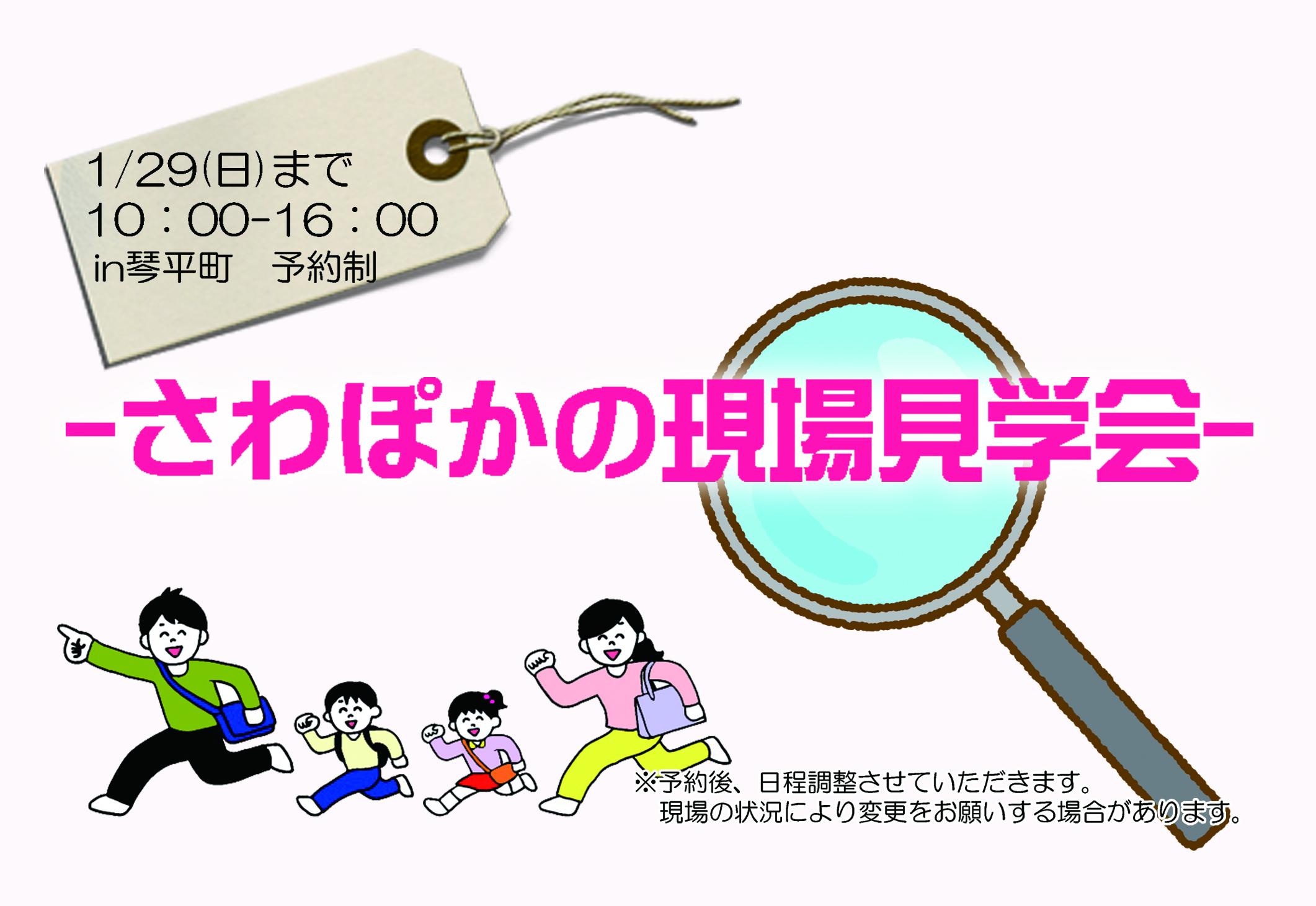 | 日時 | 1月14日(土)~29日 (日) 10:00~16:00 ※予約制 予約後、日程調整させていただきます。 現場の状況によりご予約を早めに締め切る場合があります。 |