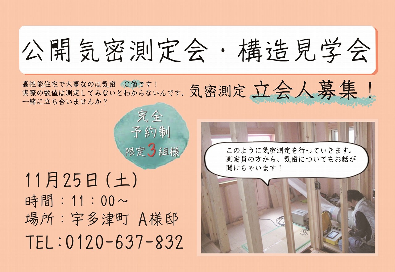 終了 お家まるわかり現場見学会~気密測定お見せします~